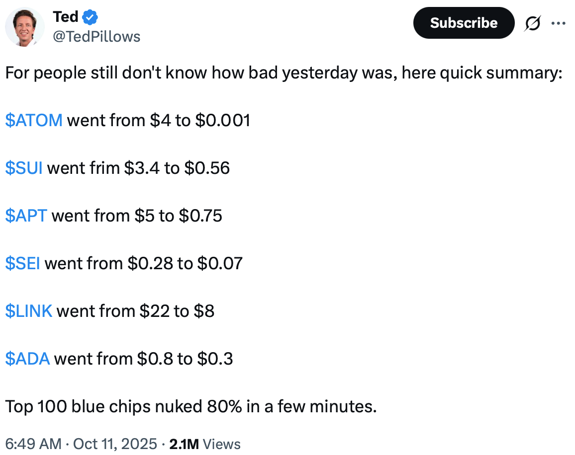 We saw the biggest crash in the history of crypto with $19.2 billion liquidated and approx $800 billion in value wiped out across the board.